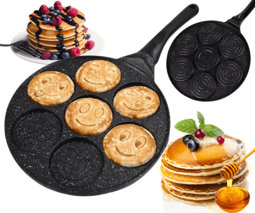 Manerul este ergonomic si rezistent. Aceasta Tigaie forme zambete 26cm este ideala pentru weekenduri relaxante in familie.