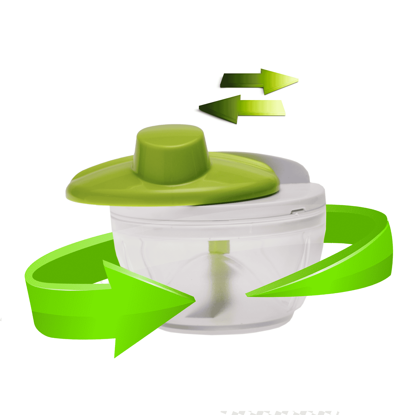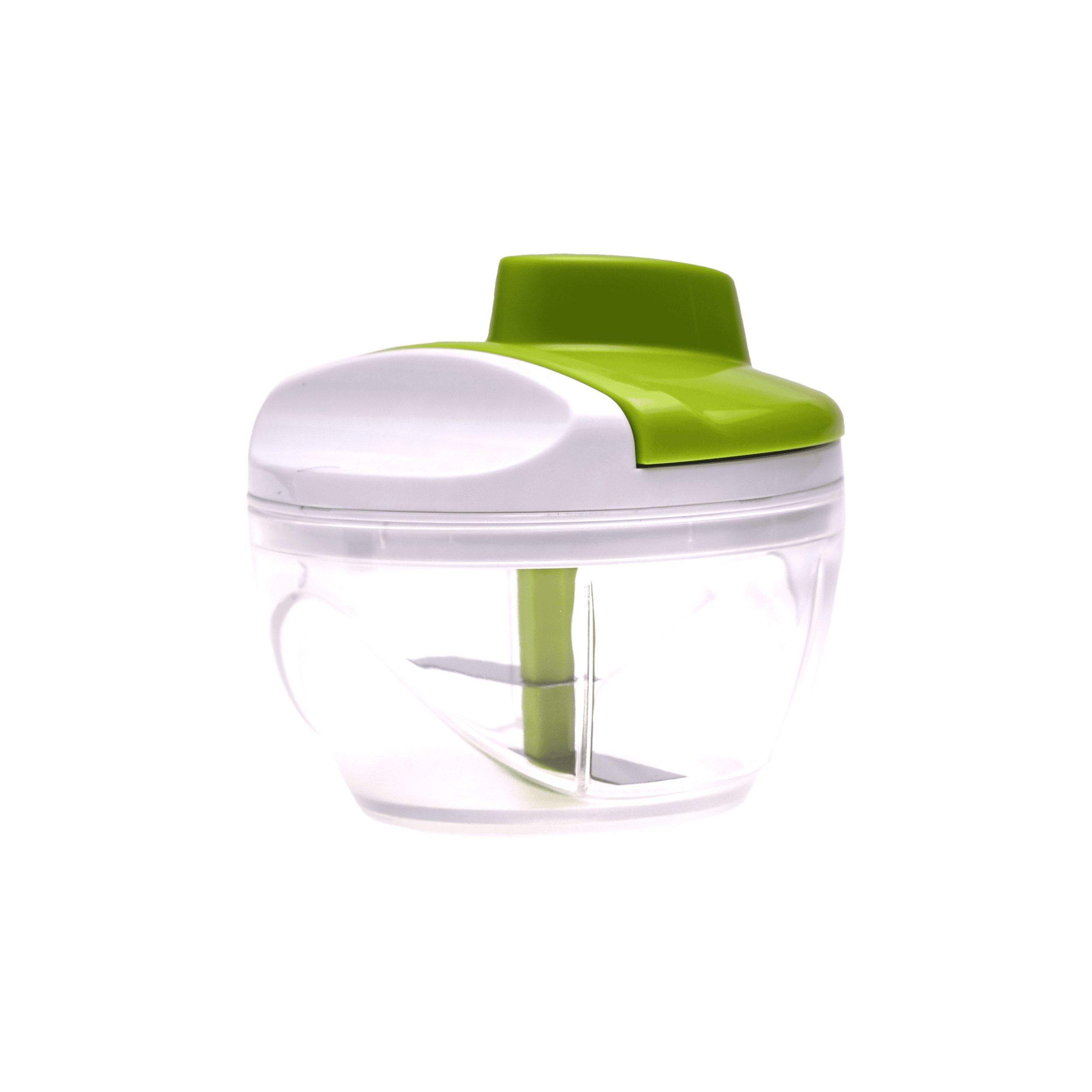 Tocator manual compact (chopper) pentru legume, ceapa si ierburi. Functioneaza prin apasare (tip piston). Echipat cu 2 lame din inox. Corp din plastic, dimensiuni 8 x 11.5 cm. Culoare Verde/Transparent.