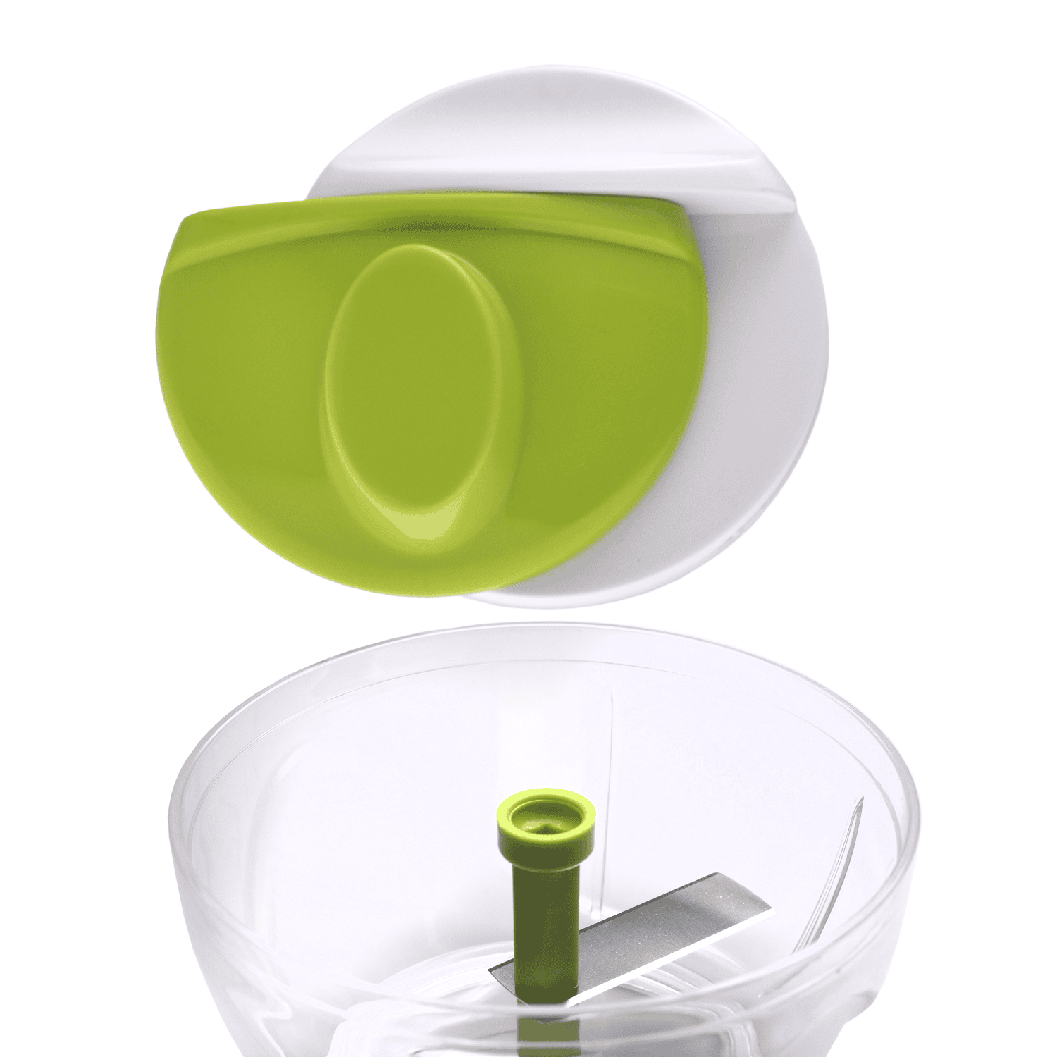 Tocator manual legume/ceapa, 2 lame inox, plastic, 8 x 11.5 cm, verde/transparent