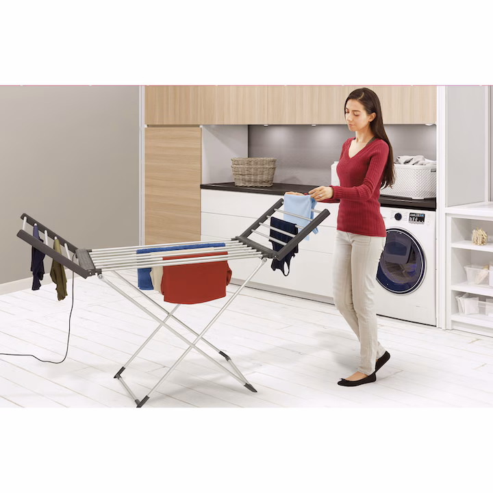 Acest uscator electric este solutia perfecta pentru zilele umede sau reci. Cu o putere de 220W, barele incalzite accelereaza procesul de uscare a rufelor fara a deteriora tesaturile, fiind in acelasi timp economic si usor de depozitat datorita designului pliabil.