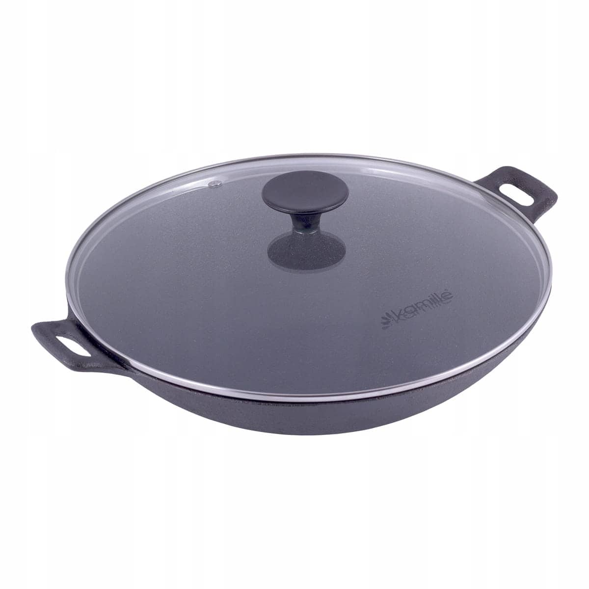 Wok din Fonta 30 cm cu Capac – Wok fonta profesional inductie durabil